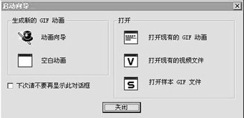 启动程序后,为了快速调用已有的动画素材,请使用“帮助→启动向导”(如图1),这个界面中提供了迅速打开现有的GIF动画、视频文件和样本GIF文件的快捷方式,我们选中Sample中的Merge。