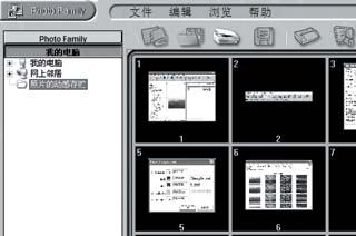 图1 进入PhotoFamily6PhotoFamily自动播放首先大家可以看看图片左边的“灰色地带”,上面有一个横条是“Photo Family”,这里就是我们的电子相册存放的地方了。其实大家也不必一定要建立电子相册,也可以直接调用PhotoFamily的播放功能来进行图片的播放,只要用鼠标点击一下“灰色地带”下面的“我的