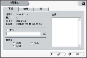 图4 点击封面就看到图片封面在某个目录添加到相册柜中之后,就会发现这个目录下面的所有图片都被归纳到了一本“电子书”里面,而且不同的图片目录有不同的封面(图3)。只要点击一下左边相应的“子相册柜”,就会看见各自的“相册”里面不同的图片了(图4)。同理,无论硬盘中有多少的图片和多少目录,都可以将它们统统添加到这个相册柜中来,用不同的封面和标识区分开来。封面及个性要调整某个相册的封面和标识很容易,只要我们选择了某个相册,然后按“Alt+Enter”,或者在相册上面点击鼠标右键,在弹出来的选单里面选择“属性”,就可以看见如图5所示的窗口了。在这里可以设置播放相册时的音乐,相册的封面样式以及相册的图像排列,名称索引等等,可以随意发挥自己的个性。
