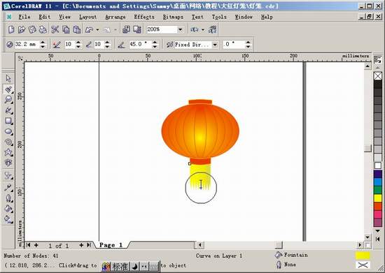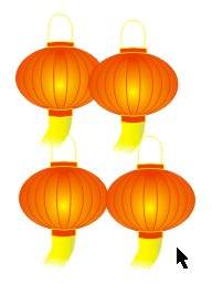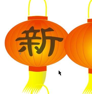 9.用Ctrl+A选种全部的物体,再用Ctrl+G组合一下。灯笼就算做好了。用“+”复制3个,我们可以在上面帖上“新春快乐”几个字。(11)