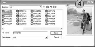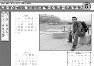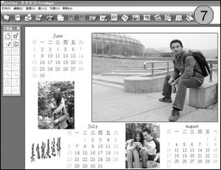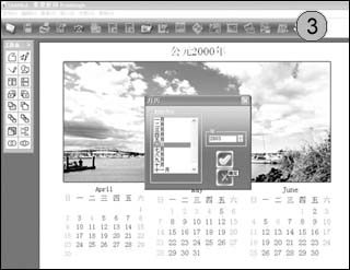 这时系统会让你选择起始的年份和月份,我们选择2003年6月(见图3),这时就会出现第三季度的年历。当然目前的整体布局还是最初我们选择的模式,只是日期变更了。接下来就可以插入自己喜爱的照片了,选择“插画”进入照片选择界面(见图4),选择照片后,便可将照片更换到年历的中央,同时再将一些其它喜欢的照片摆放到其它位置。