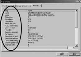 图1(1)快门:Metadata中的“Shutter Speed Value”,就是快门值资料。一般来说,我们是以分数来表达快门值的,即1/ 15、1/ 125秒之类,而不会说0.067或0.008秒。而ACDSee 3.0为了方便,一律把快门值以后者的方式展示。要把它转为分数,算式是:1/(1/ Shutter Speed Value)。例:Shutter Speed Value=0.023683s 快门值=1/(1/ 0.023683)秒=1/ 42秒(2)焦距:拍摄所用的焦距,就是Metadata中“Focal Length”一栏的数值,单位是mm,“6”即6mm。不过,6mm的镜头放在数码相机上跟放在35mm相机上区别很大,要把数码相机的焦距转换为大家惯用的35mm相机标准,先要翻查