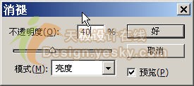 图4 4.在“消退查找边缘”对话框中,选择模式为“亮度”(图5),然后降低部透明度的数值,一边调节数值,一边观察图像的变化效果。