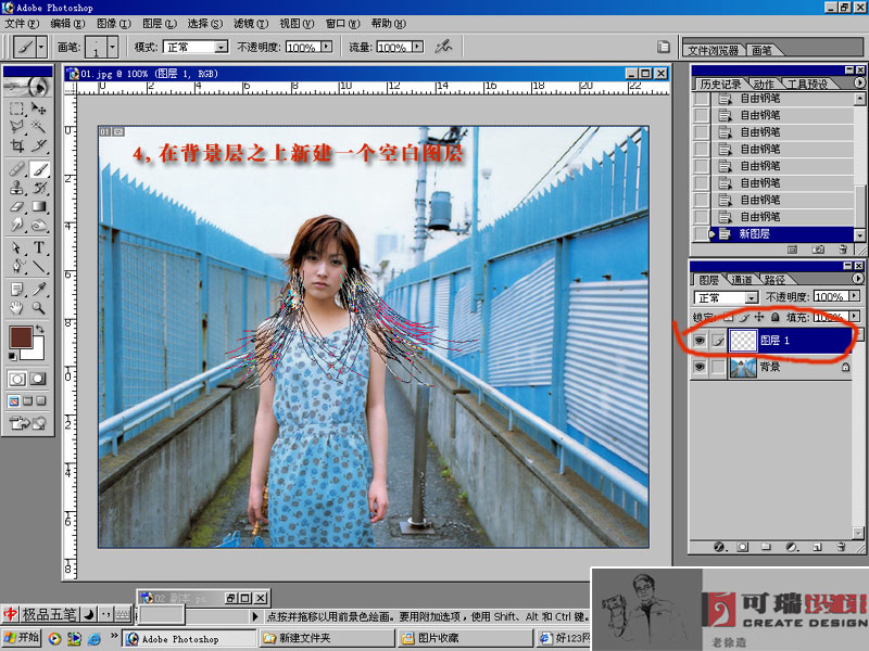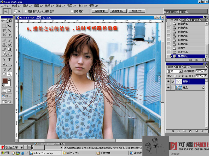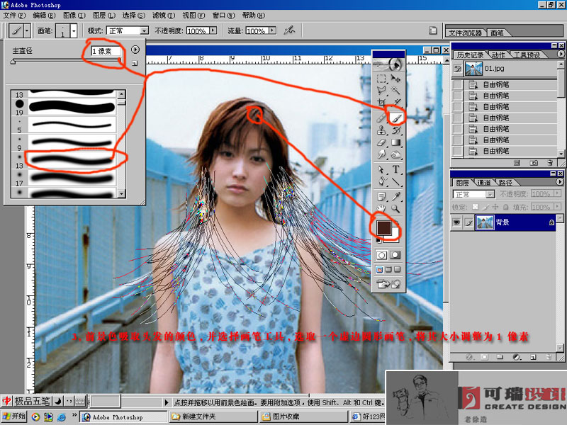 今天看了一个做头发的教程,觉得不尽人意,就自己做了一个,用Photoshop7.01完成.