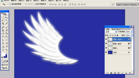 最后将做好的这几层翅膀合并图层,并复制然后翻转,做出另一边的翅膀,放上人物就行了。