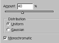 图3 4.使用钢笔工具,勾画出羽毛的羽绒外框,填充白色,Filter-Noise-Add noise(滤镜-->杂色-->添加杂色),设置如图4:
