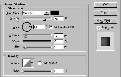 图12 第三步:球固定线部分 1.使用钢笔工具画一条弯弯曲曲的白色曲线,复制,粘贴两次(总共3条曲线),调整曲线,并对粘贴得的各条曲线,Layer-->Layer Style-->Drop shadow给曲线添加阴影效果,然后让它们绕在一块,合并图层的效果如图13: