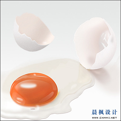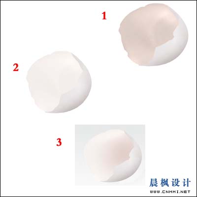 3.新建一层用R:236 G:233 B:233颜色填充,并用“加深减淡”工具做出高光,为了看上去更自然,复制该层并添加杂色(数量为3%,单色,高斯模糊)并降低该层透明度,保留选区,在此层的下面新建一层用白色填充,并向上移动1像素,向左移动3像素,做出蛋壳的白边: