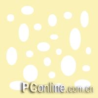 滤镜>其他>位移,将水平和垂直位移量均设为100像素,为定义区域为折回。这样,白色椭圆(实际上是透明椭圆形)就随机分布在画布的边缘。(图02)