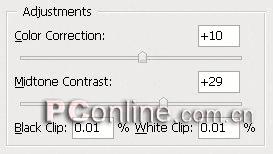 暗部(level 0)与亮部(level 255)色阶的调整,Black Clip and White Clip值越大,照片的对比度也会越大,但是有一点要注意的是,过大的值会造成细节丢失,所以要慎用。