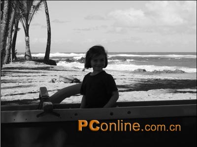 1、首先,打开PHOTOSHOP的SAMPLE下的ISLAND GIRL(图01),我们可以看到由于背光这张照片中的女孩无法看得很清楚,只有一点微弱的暗部光线(图02)。