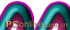 现在,选择图层main object,将back层与之链接后拼合。仔细观察,可以看到紫红色的外边缘还有一些较亮的杂点,我们要想办法把它消除。其实这很简单,由于这些杂点很细微,所以,我们只要选择合适的选区,对选区内的图像稍加模糊就可以了。载入通道stroked back的选区,它应该位于紫红色的外边缘,我们以这个选区为基准,用选择>修改>扩边命令,将边界选区的宽度设为3像素,这个宽度差不多可以包括所有的较亮杂点了,对选区应用半径为1像素的高斯模糊,随即用消褪命令将高斯模糊的不透明度降低到55%,正常模式,取消选择。这样,这些杂色就会被完全消除。(图10d)
