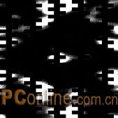 选择通道a7,使用模糊>动感模糊滤镜,将角度设为85度,距离为12像素;使用位移滤镜,改变图像中白色像素的位置,这里,我将水平和垂直移动量分别设为86、32像素。不管怎么移动,未定义区域都要被定义为折回。调整色阶,消除灰色像素。(图18)