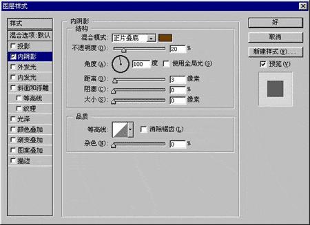 7.双击图层1,在弹出的混合选项中选择内阴影效果,并做如(图6)般设置,完成如(图7)。