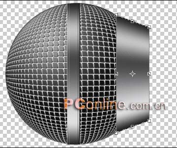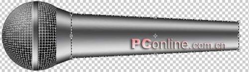 11.取消选区。现在文字应该紧贴环绕着麦克风手柄了。如果效果不理想,使用自由变换工具(Ctrl+T)进行调整,直到合适为止。(图30)