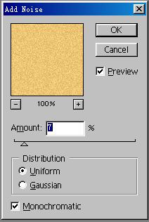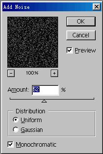 6.用鼠标点击 Filter(滤镜)菜单,选择Noiseà(杂点)点击Add Noise(添加杂色),会弹出图4所示对话框。