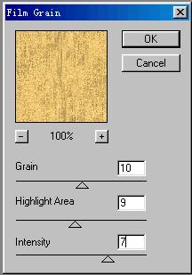 在Grain(颗粒)输入10,Highligth Area(高光区域)输入9,Intensity(强度)为7,点击OK。