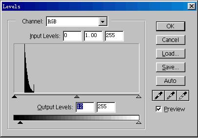只要在 Output Levels(水平输出)输入12和255即可,结果图12所示。