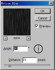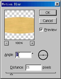 25.选择菜单Filter,选取Blur(模糊),点击Motion Blur(动感模糊),会弹出图22所示。