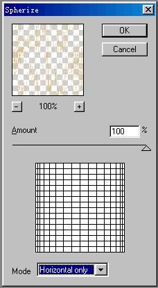 17.选择菜单Filter,选取Distort(扭曲),点击Spherize(球面化),显示图14所示对话框。