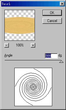 26.选择菜单Filter,选取Distort(扭曲),点击Twirl(旋转扭曲),会弹出图23所示。