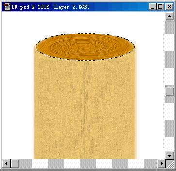 23.用椭圆工具选木桩中部,通过选择主菜单Select,点击Transform Selection,对椭圆进行调整,结果如图20所示。