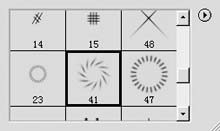 2、将前景色设置为天蓝色。从工具箱中选择喷枪工具,选择如图1所示的笔刷(可以从混合画笔中调入),在图像中间区域单击鼠标生成如图2所示图案。