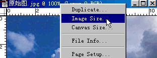 2.在云彩图片标题栏上击右键,选择图象大小“Image size”命令,如下图2所示。