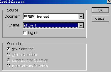 12.单击菜单面板上的“Select(选择)—Load selection(载入选区)”将通道1载入选区,如图8。