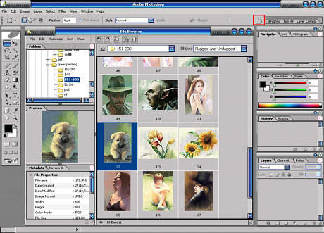 1.首先我们点一下调板井右上角的File Browser(文件浏览器)的图标按钮。打开的File Browser的对话框比7.0版本的大很多,而且增加了菜单和功能按钮。