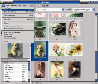 2.从File Browser中打开文件可以选中图片的缩图直接托拽到软件界面内,也可以用CTRL+O的快捷键,也可以用File Browser的File(文件)菜单中的打开命令。