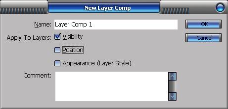 9.新建以后,会出现一个New Layer Comps的对话框。可以重命名和设定一些属性。从帮助文件来看,这个Layer Comps的面板更像是图层状态分布的历史记忆面板。