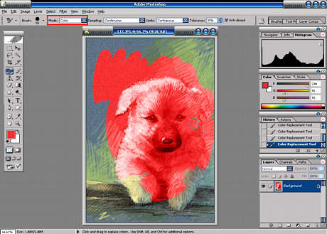 10.在工具条中新增了一个Color Replacement Tool(颜色替换笔刷),快捷键J。这个笔刷可以快速对局部颜色进行替换,比如去除照片的红眼和局部的上色。