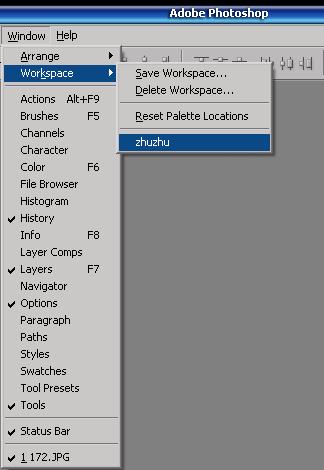 13.自定义的工作空间命名会出现在Workspace的菜单中,以后就算面板弄乱了,一个菜单命令就可以轻松恢复。如果需要使用默认的界面安排可以选择Reset Palette Locations(复位面板位置)的命令。