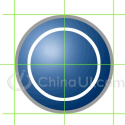 6、新建“图层3”,在中间做一个和原来的圆一样正圆选区(用椭圆选取工具从坐标左上方拉到右下方即可)然后用白色外描边9象素,然后用快捷键“Ctrl+T”来调整它的尺寸位置,记得要同时按住Shift和Alt,以便保证它能够和原来的圆成为半径不一样的同心圆,如下图: