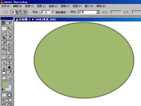 1.新建640*480文档,白背景。 新建一层,命名“瓜皮”,用矩形选框在画布中间画个大椭圆,填充浅绿色(159/182/115)。