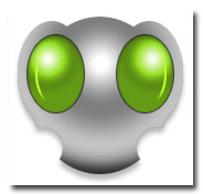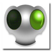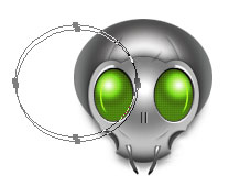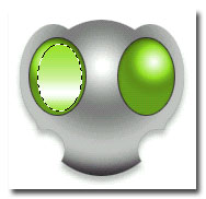 5、新建一层,命名为“Eyes”,在靠近头部的一边,用椭圆工具画一个椭圆,在靠近左边的位置,用刚才的渐变设定来填充椭圆。取消选择,选这移动工具,Shift+Ctrl+Alt拖动渐变椭圆副本到头部的另一侧(Shift可保证平行移动〕,如果不希望你的小宠物是对眼的话,将副本层水平翻转,然后将副本层向下合并,形成的新层依然名为Eyes。(图06)