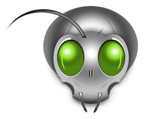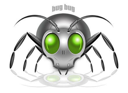 23、最后,隐藏背景层和触角层,在最上面新建一层,按住Alt键,在图层命令中选择合并所有图层,这样,就建立了一个图层盖印。将盖印图层垂直翻转,放置在虫虫的下方,压缩变形,必要时还要做局部的扭曲变形。之所以要隐藏触角层,是因为它会扰乱画面。最后,在图像上方加上一些装饰性的文字,如果需要的话,可以用Photoshop的文字变形来调整。(图bug)