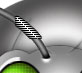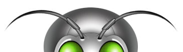 20、选择喷笔工具,选择一个和触须直径差不多的笔头,硬度为30-40,笔刷圆度为40,用黑色在触须根部点一下;再选择一个稍大一点的柔化笔刷,在触须层下新建一层,用白色在触须根部点一下,合并这两层,这样,我们的虫虫看起来更有金属质感。(图29)