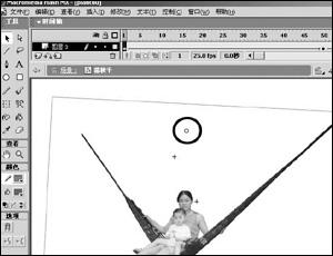 在Photoshop中打开扫描仪输入的照片,用钢笔工具将人物和秋千勾选(小提示:在使用钢笔工具时,按住“Ctrl”键可以修改节点的位置,按住“Alt”键拖动手柄,可以修改贝兹曲线的曲率),修改完毕后点击鼠标右键,选择“选取图像”,为使抠选的图像边缘更加自然,在弹出的对话框中将羽化值设为5,然后“Shift+Ctrl+I”反选图像,点击“Delete”键,将背景删除,将图像存为GIF格式。