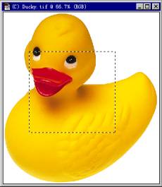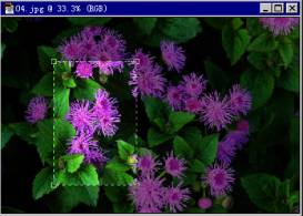 ,鼠标在图层上变为+字形,用鼠标拖动在图像中画出一个矩形。所选中区域的线变为高亮虚线。可进一步对选中区域进行其他操作。