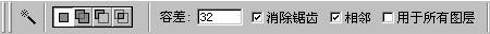 魔术棒的任务栏(如图5-33所示)包括选取方式,羽化与消除锯齿,容差