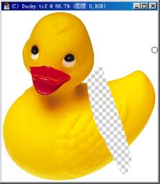 :这是一种可以擦除指定颜色的擦除器,这个指定色叫做标本色,表示为背景色。也就是说,使用它可以进行选择性的擦除。如图4-11所示。背景擦除工具只擦除了白色区域。其擦除功能非常灵活,在一些情况下刻达到事半功倍的效果。自己动手试试看。