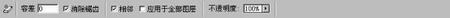 魔法擦除工具的任务栏如图4-16所示,与魔术棒相似,包括:容差,消除锯齿,相邻,应用于全部层,不透明度。