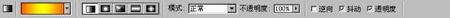 渐变工具的任务栏如图4-31所示,包括:色彩,渐变工具,模式,不透明度,逆向,抖动,透明度。