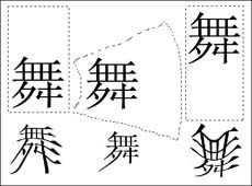 2、按【M】键再次选择矩形工具,选取“舞”字,然后按【Ctrl+F】键重复应用“Pinch”滤镜,完成“挤压”效果的制作。一般说来,如需要突出文字某一侧的舞蹈效果,那就在其另一侧增加选择区域,另外您还可以对文字的局部区域进行挤压以进一步突出效果。以上过程可多次反复加以应用。