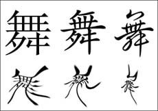 1、新建一个图像文件,按【D】键设置前景色为黑色,按【T】键选择文字工具,在图像区域内单击鼠标左键定位文字,在属性窗口中设置“Font”为宋体、“Size”为“180 Pixels”,输入“舞”字。然后按【V】键选择移动工具,拖动文字调整至合适位置。