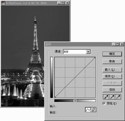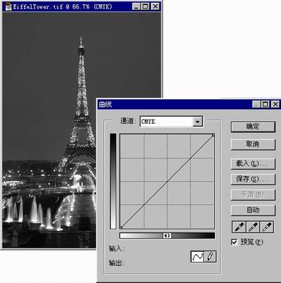 色阶的调整主要是通过绘制曲线来完成的。下面以一实例说明: