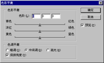 如图8-25所示,就是色彩平衡的对话框。.它能进行一般性的色彩校正,他可以改变图像颜色的构成,但不能精确控制单个颜色成分(单色通道),只能作用于复合颜色通道。