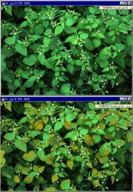 图8-31是一实例对比。图30是替换颜色对话框中的参数设置。叶子由原来春天的绿色变成了秋天的黄页。